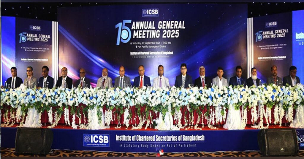 ইনস্টিটিউট অব চার্টার্ড সেক্রেটারিজ অব বাংলাদেশ (আইসিএসবি) এর ১৫তম বার্ষিক সাধারণ সভা (এজিএম) শনিবার রাজধানীর একটি renomé হোটেলে অনুষ্ঠিত হয়েছে। সভায় এর সভাপতি এম. নাসিমুল হাই সভাপতিত্ব করেন এবং আগামী ২০২৪ সালের কাউন্সিল রিপোর্ট উপস্থাপন করেন। উদ্বোধনী বক্তব্য দেন আইসিএসবির ভারপ্রাপ্ত সেক্রেটারি মো. শামিবুর রহমান। সংগঠনের এক সংবাদ বিজ্ঞপ্তিতে এ তথ্য জানানো হয়েছে। সভায় আইসিএসবির […]