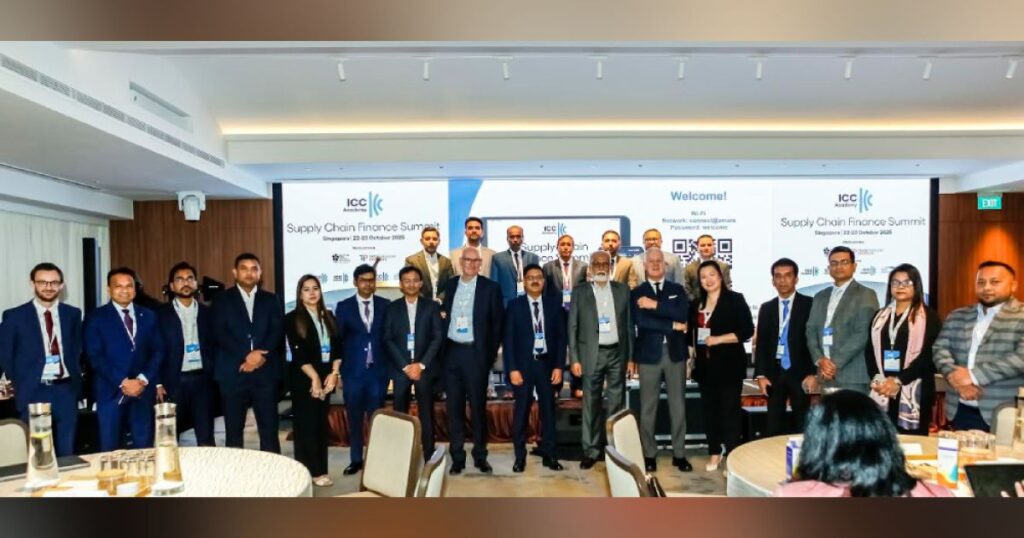 ইন্টারন্যাশনাল চেম্বার অব কমার্স বাংলাদেশ (আইসিসিবি) সিঙ্গাপুরে অনুষ্ঠিত আইসিসি একাডেমি সাপ্লাই চেইন ফিন্যান্স সামিট ২০২৫-এ অংশগ্রহণের জন্য আটটি ব্যাংকের ২৯ জন ব্যাংকার এবং বাংলাদেশ ইনস্টিটিউট অব ব্যাংক ম্যানেজমেন্ট (বিআইবিএম)-এর দুজন প্রতিনিধি পাঠায়। এই সম্মেলনটি ২২ থেকে ২৩ অক্টোবর সিঙ্গাপুরে অনুষ্ঠিত হয়। এক সংবাদ বিজ্ঞপ্তিতে জানানো হয়, আইসিসিবি এই সম্মেলনের আয়োজনের সাথে আইসিসি একাডেমির একটি অংশীদার […]