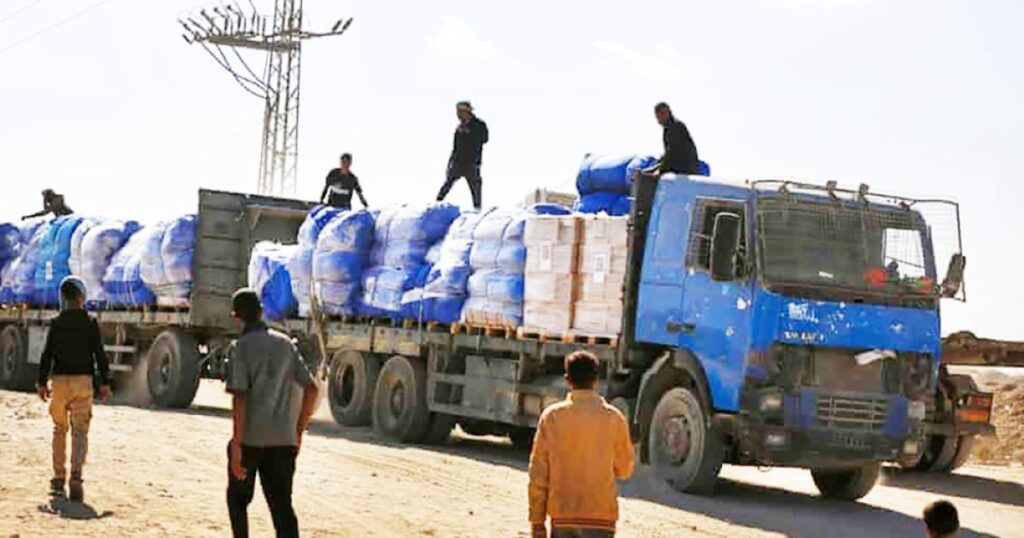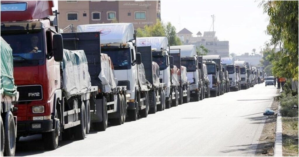 গাজায় যুদ্ধবিধ্বস্ত পরিস্থিতিতে ঢুকছে ৬০০ ত্রাণবাহী ট্রাক