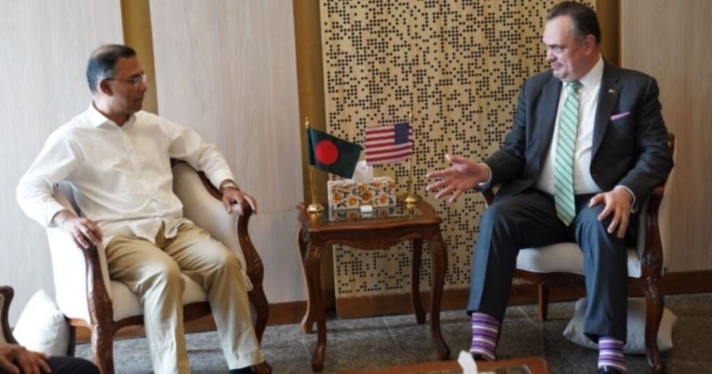 প্রধানমন্ত্রী তারেক রহমানের সঙ্গে সৌজন্য সাক্ষাৎ করেছেন বাংলাদেশে নিযুক্ত মার্কিন রাষ্ট্রদূত ব্রেন্ট টি. ক্রিস্টেনসেন। আজ রোববার (৫ এপ্রিল) দুপুরে প্রধানমন্ত্রীর সচিবালয়ের কার্যালয়ে এই সাক্ষাৎ অনুষ্ঠিত হয়। প্রধানমন্ত্রীর অতিরিক্ত প্রেস সচিব আতিকুর রহমান রুমন খবরটি নিশ্চিত করেন। সাক্ষাৎকালে তারা পারস্পরিক স্বার্থসংশ্লিষ্ট বিভিন্ন বিষয়ে আলোচনা করেন। রাষ্ট্রদূত এ সময় প্রধানমন্ত্রী তারেক রহমানের হাতে দুটি ছবি এবং হোয়াইট […]