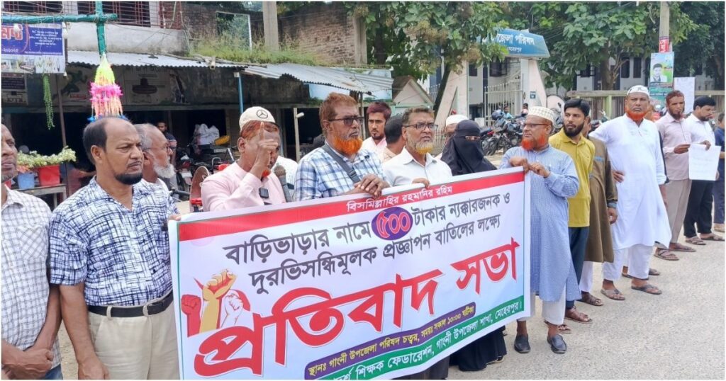 শিক্ষকদের বাড়ি ভাড়ার নামে ৫০০ টাকার প্রজ্ঞাপন বাতিলের দাবি মানববন্ধনে