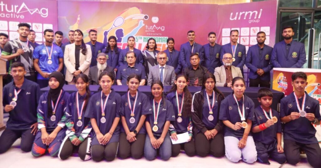 এক জাকজমকপূর্ণ আয়োজনে অনুষ্ঠিত হলো ৫ম জাতীয় স্কোয়াশ চ্যাম্পিয়নশীপ ২০২৫-এর সমাপনী ও পুরস্কার বিতরণী অনুষ্ঠান। এটি উদ্বোধন করেন যুব ও ক্রীড়া মন্ত্রণালয়ের সচিব মোঃ মাহবুব-উল-আলম। বসুন্ধরা স্পোর্টস সিটির জুলকান ইনডোর এরিনায় অনুষ্ঠিত এই প্রতিযোগিতায় বিভিন্ন বিভাগে বিভিন্ন বয়সী খেলোয়াড়রা অংশ নেন। মহিলা শাখায় অনুর্ধ ১৩ গ্রুপে চ্যাম্পিয়ন হন অনুর্ধ ১৩ বছর বয়সী অনুরিকা সুলতানা, অনুর্ধ […]