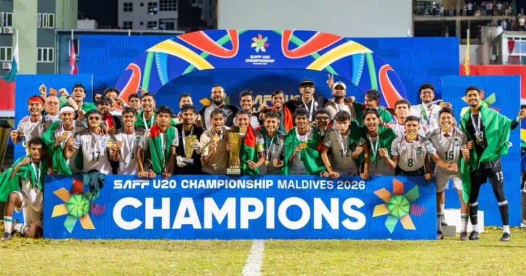 মালদ্বীপের রাজধানী মালেতে অনুষ্ঠিত এএফসি অনূর্ধ্ব-২০ ফুটবল প্রতিযোগিতার ফাইনালে বাংলাদেশের তরুণরা ঐতিহাসিক সফলতা অর্জন করেছে। চিরপ্রতিদ্বন্দ্বী ভারতকে টাইব্রেকারে ৪-৩ ব্যবধানের ঐতিহাসিক জয় দিয়ে দেশটির ফুটবলে নতুন দৃষ্টান্ত স্থাপন করেছে লাল-সবুজের প্রতিনিধিরা। শুক্রবার রাতে ন্যাশনাল স্টেডিয়ামে নির্ধারিত সময়ের খেলা গোলশূন্য ড্র থাকায় ম্যাচ গড়ায় ভাগ্যনির্ধারণী পেনাল্টি শ্যুটআউটে। এই উত্তেজনাপূর্ণ ম্যাচে বাংলাদেশের জন্য সব কিছুই ছিল একদম […]